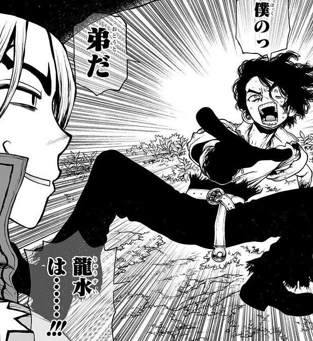 約7年ぶりに復活した千空は、スイカが何度も何度も失敗しながらも硝石畑から復活液を作り出したことを聞き、やるじゃねえか、スイカ…!!と、スイカを褒めます。その後、千空は硝酸を作成しますが、1日で硝酸を作り出し作り出すのに何年もかかったスイカを驚かせます。