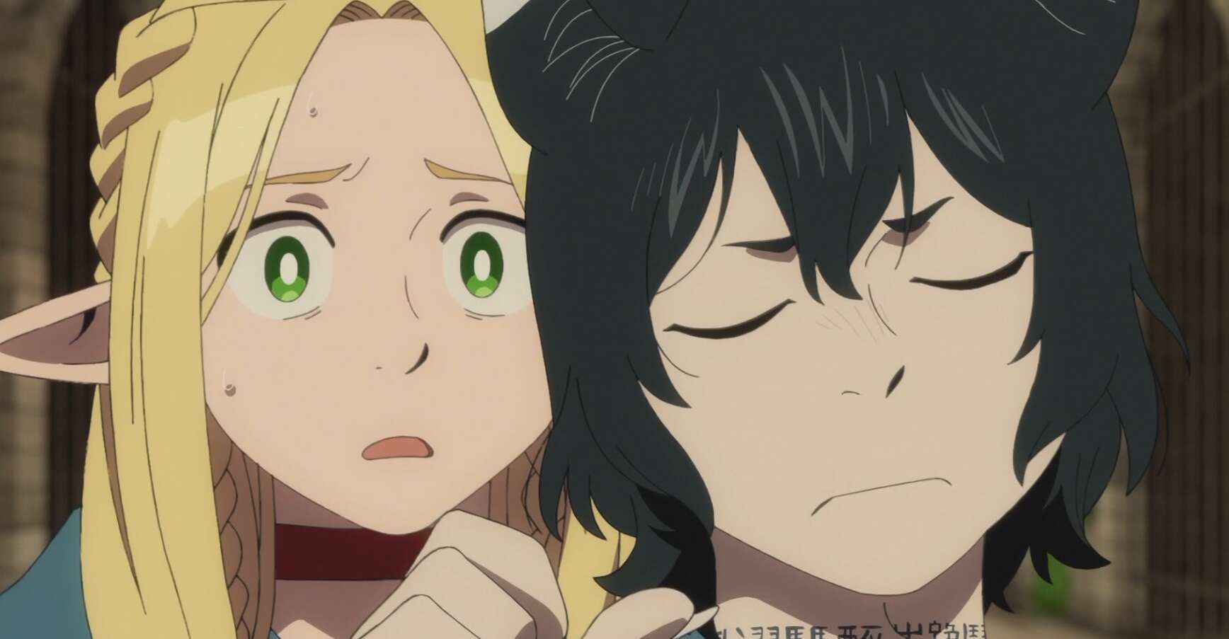 化け物に一瞬触れられてしまったライオスは一気に老化し、その様子を見たマルシルは恐怖しナイトメアはさらに力を増します。マルシルの話から、マルシルが“死”や親しい人が自分より先に死んでいく事を恐れているのだとライオスは推測し、何も出来ないと言うマルシルを励まし続けます。