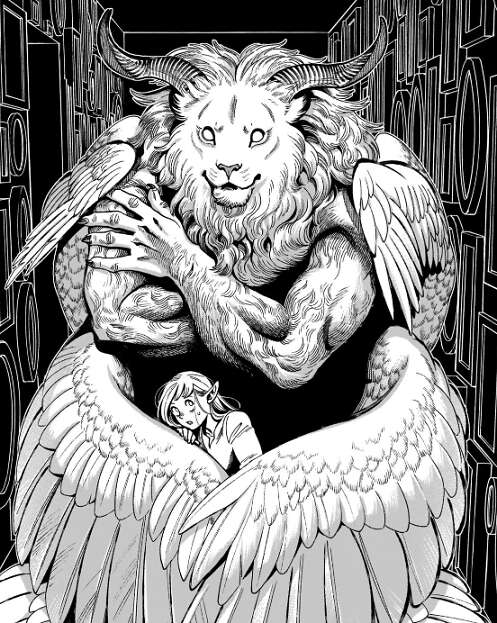 本の封印が解かれた翼獅子は、以前のように頭だけなく体も出てきていて、より完全に復活したことが描かれています。頭だけだと悪魔という印象は薄かったですが、体も描かれると、より悪魔という印象が強くなりました。