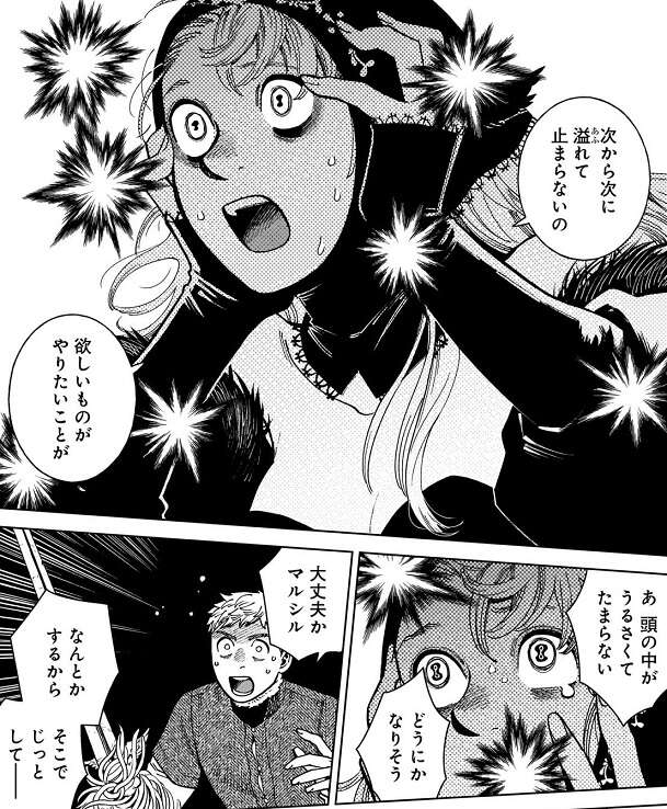 その直後、マルシルは叫ぶのを止めて、こんなつもりなかった、人種による寿命の佐野原因を調べて、数百年かけて十年延ばせたら上出来だって、とマルシルは元々考えていた考えをライオスに話します。