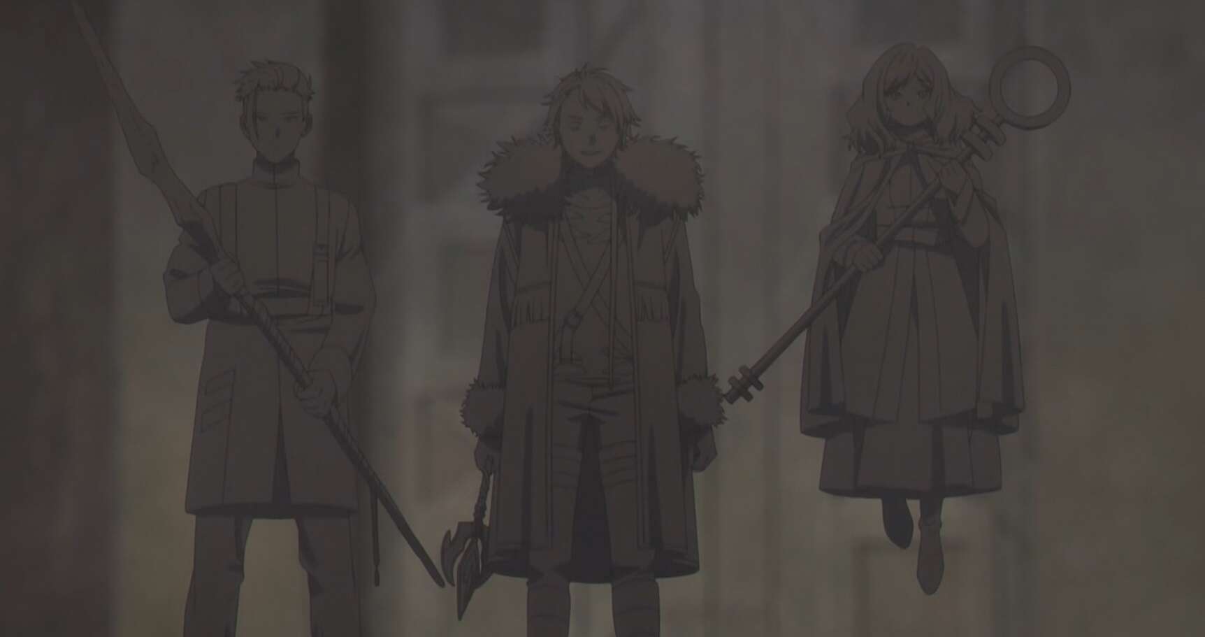 ヴィアベル組は零落の王墓の最深部に近い場所まで進みますが、零落の王墓の最深部にいる魔物が動き出します。すると突然、エーレがソルガニールで拘束されてしまいます。シャルフが魔法で視界を遮り、エーレの拘束を解きますが、攻撃してきたのはヴィアベル達に似た見た目の複製体でした。複製体はヴィアベル達の魔法も模倣していて、ヴィアベル達は各々の複製体相手に戦闘を始めます。