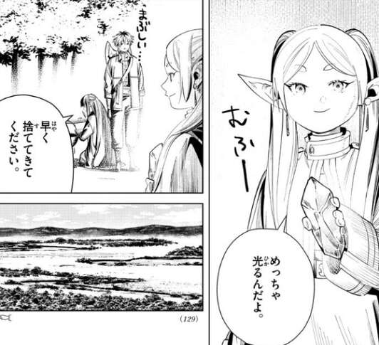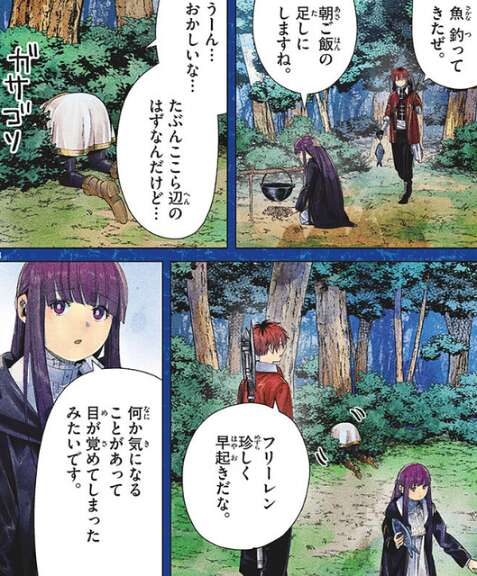 勇者ヒンメルの死から29年後、北側諸国、ザオム湿原で野営をしているフリーレン達ですが、フリーレンが珍しく早起きをして何かを探しています。