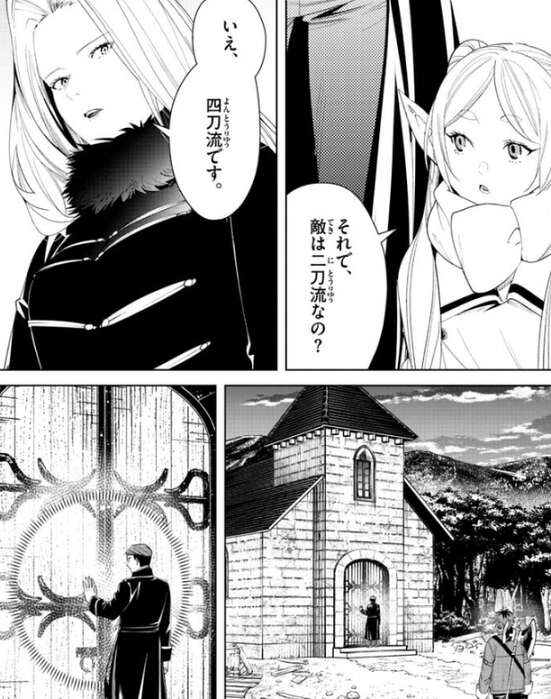 ゲナウは教会にいるようで、メトーデがゲナウの分のパンを持っていこうとしますが、フリーレンはメトーデに先に敵の分析結果を教えて欲しいと言います。そこでシュタルクがゲナウの分のパンを持って、ゲナウの所にまで行きます。一方、魔族は分析の結果、四刀流であることが判明します。