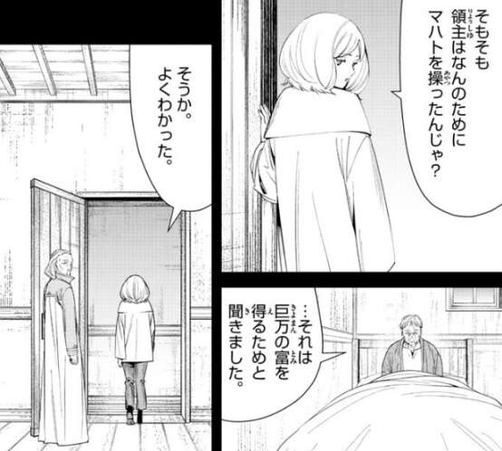 エーデルは領主が巨万の富を得るためにマハトを操ったことに、疑問を持ちます。マハトが魔法で作る黄金は加工出来ないのですぐにばれてしまいます。エーデルは、金の価値が普遍的なのは、多と国が滅んでも加工して新しい価値を見出すことが出来るからだ、と言います。安易に加工が出来て扱いやすい希少金属だから価値があるが、マハトが魔法で作った金は、加工が出来ないので価値はない、とエーデルは断言します。