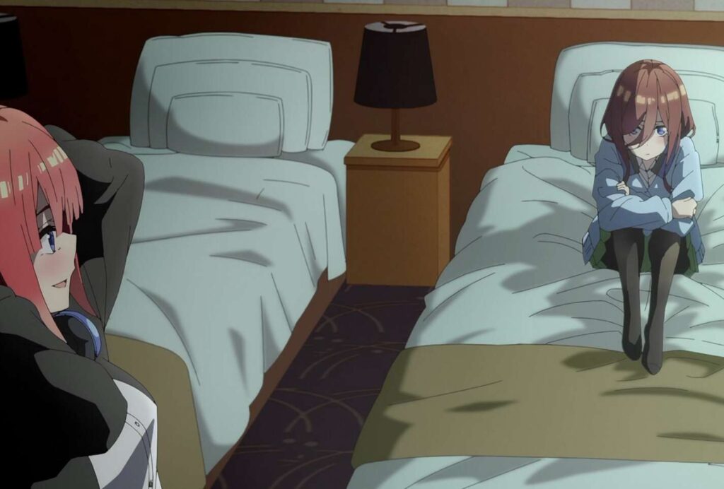五月が昔の写真を見ていると四葉が部屋に入ってきて、最近なんだか私たちの雰囲気悪いけど…、修学旅行でまた仲良くなれるといいね、と五月に話しかけます。五月も、そうですね、またあの頃のように戻れますよ、と答えます。