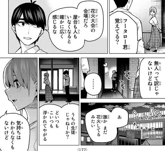 Home Blog 【ネタバレ】五等分の花嫁 102話 『最後の祭りが一花の場合②』のネタバレ、感想