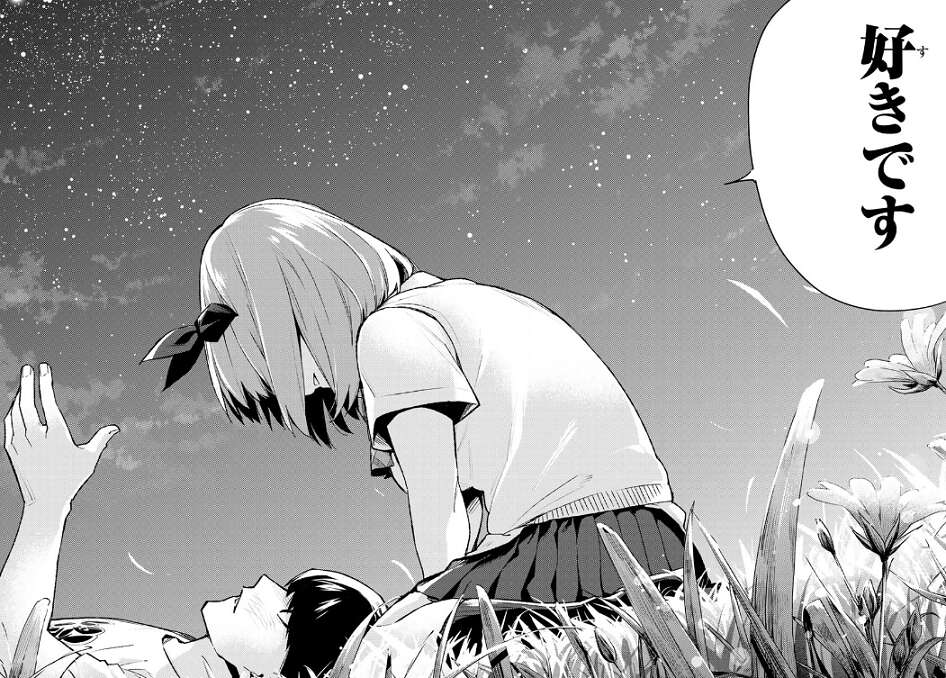 四葉は風太郎には嘘をつけません…、ずっと好きでした、と自分の昔からの隠していた気持ちを正直に告白します。