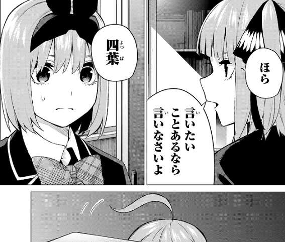 次回、五月と風太郎が聞いている中、四葉と二乃が再び話し合います。