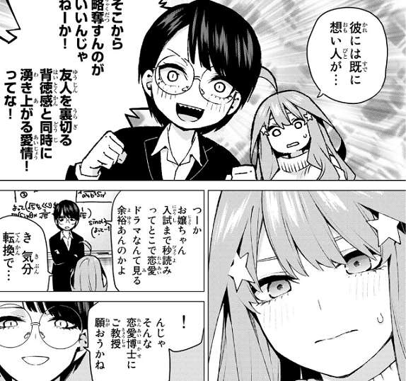 四葉と二乃の話し合いの場に、五月と風太郎が