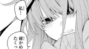 とうとう三玖は一花に風太郎が好きだと宣言しました。まだ他の姉妹には宣言していませんが、どうなるのでしょうか。