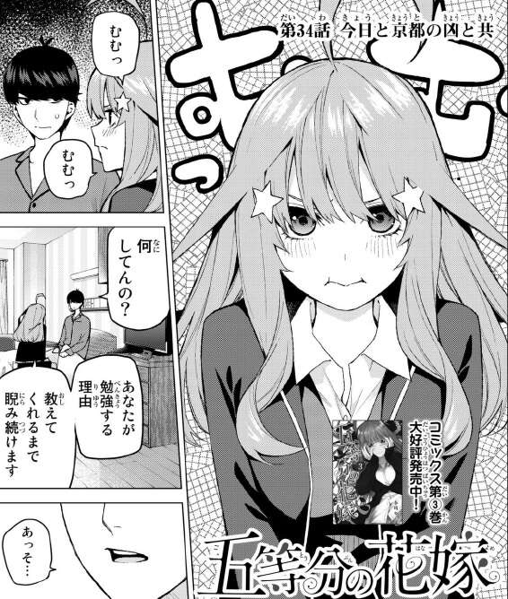 Home Blog 【ネタバレ】五等分の花嫁 34話 『今日と京都の凶と共』の感想
