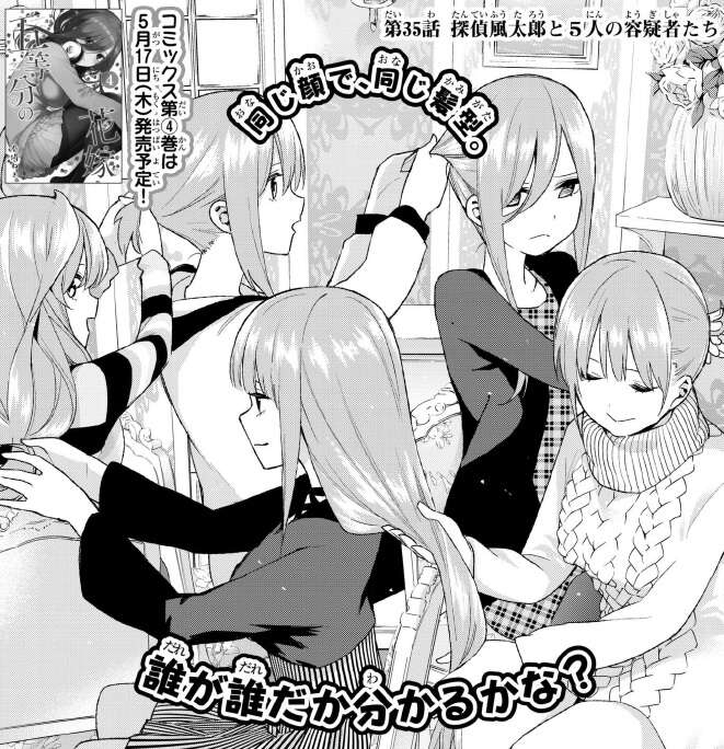 【ネタバレ】五等分の花嫁 35話 『探偵風太郎と5人の容疑者たち』の感想