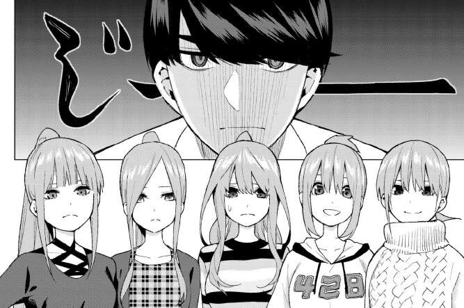 第35話です。この並びは一花、二乃、五月、四葉、三玖の順でしょうか?