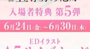 入場者特典 第4弾として、描きおろしイラストミニ色紙 花嫁ver.(5種ランダム)の配布が6月10日(金)から開始されました。第2弾は制服ver.でしたが、今回は花嫁ver.です。6月16日まで配布予定だそうです。今回も狙った色紙をゲットするのは、苦労しそうですね…。