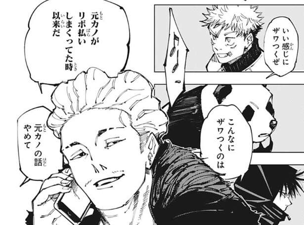 第152話まで禪院家の話でしたが第153話からは新展開となり、虎杖と伏黒が秤金次に会いに行き、協力を得ようとします。秤が賭け試合を開催しているので、虎杖は賭け試合に参加して秤に接触できないか探りを入れますが、賭け試合の対戦相手はパンダでした。パンダと密かに話し合い、パンダに勝った虎杖はこのまま秤に会うことが出来そうです。