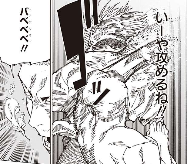 鹿紫雲一は呪霊を足場に、海中に落下することを回避します。だが今のおれはマンガ脳だぜ、と秤は言うと呪霊に殴りかかります。