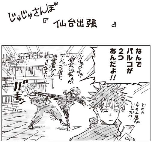 虎杖から仙台は田舎だと教えられていたのでしょうか?釘崎は、なんでパルコが2つあるんだよ!!と、虎杖に激怒し蹴りを入れています。釘崎は、「盛岡まで4時間かかるクソ田舎」ほどの田舎出身なので、虎杖が田舎者ヅラしたのが許せなかったのでしょう。