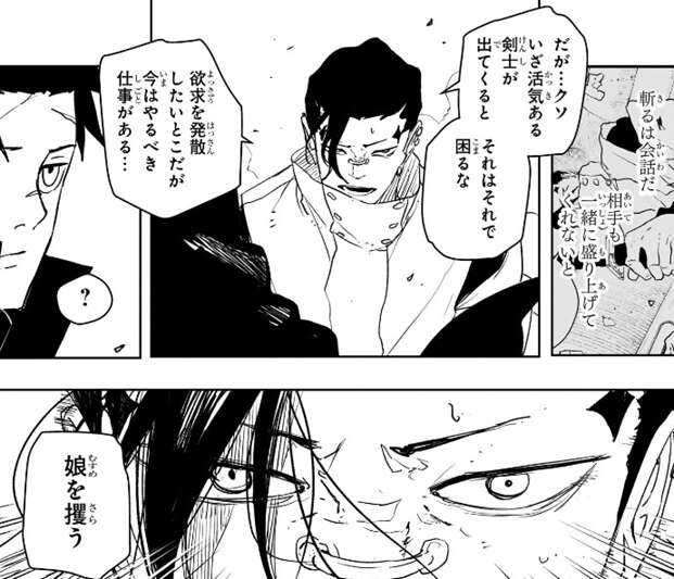 しかし久々李の頭には昼彦の、久々李、真面目過ぎてしんどい、ま、見ててよ、という会話や、幽の、昼彦がそういうなら自由にさせてやろう、という会話が蘇ります。さらに“斬る”は対話だ、という言葉とともに、久々李の斬欲が頭の中でどんどん膨らんでいきます。