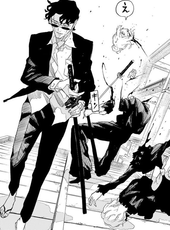 飛宗使用時の座村は舞う羽根を通して周辺を知覚し、さらに『鴉』を使用していると舞う羽根と自分の位置を変えられるようです。一方、チヒロも涅・千を使用して、座村に一方的にやられないように斬撃を放とうします。座村は郎に封印を解いたのかと聞きますが、郎はイヲリが自力で解いたと答えます。それを聞いた座村はもう一度封印するように言いますが、久しぶりに会った娘にかける言葉もないの?とイヲリは言い、私ずっと……お父さんのこと…、と叫びます。