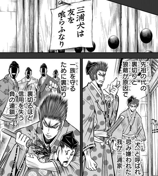 足利直義にあっという間に三方向から包囲され不利な状況の北条軍ですが、北条泰家が敵の三浦時明を寝返らせようと、直接敵陣まで単騎で交渉に行きます。三浦時明は北条泰家の説得など無視して首を獲ろうとしますが、全てのやましさを清算し、楽しく真っ新な世に賭けてみよう?と、北条泰家は説得します。三浦時明は、「犬」と呼ばれ忌み嫌われた三浦家は、見苦しく世渡りを続けてもいずれ嫌われながら滅びるだろう、と心の中でつぶやくと、やましい戦は止める決心をします。
