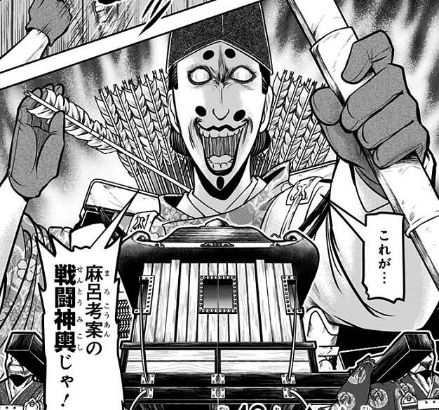 伝令役として「中」の戦場に辿り着いた時行は保科党に作戦を伝え、「中」の戦場では国司軍相手に決戦が始まります。貞宗の援軍・100騎も大乱戦の中では決定力とならず、形勢は保科党に有利でしたが、国司・清原信濃守が自ら考案した戦闘神輿で戦場出てきたことで形勢は一気に混沌としてきます。
