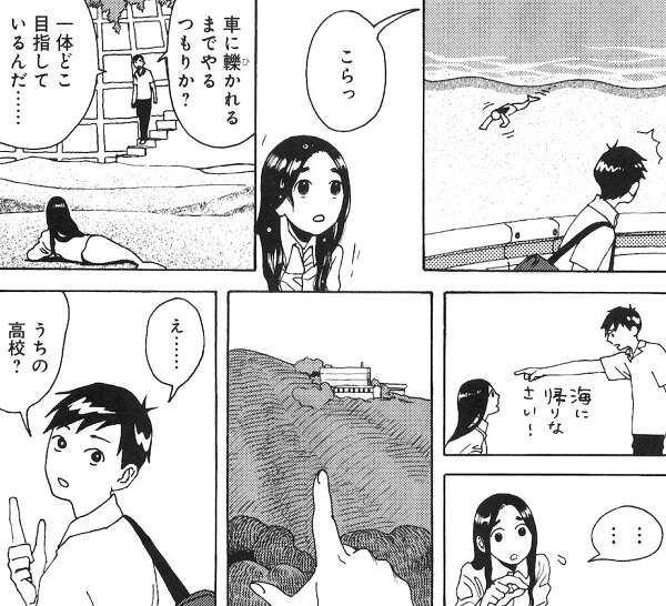 人魚が普通に存在している小さな町で、準は通学路の途中で倒れている人魚を見つけます。友人の浜に人魚をどうすればいいか携帯で相談しますが、人魚は金を持っていないので治療費の請求が来るから放っとけ、と言われます。しかし、人魚をそのままに出来ない準は救急車を呼び、救命士が海に浸けると元気になって人魚は海に逃げていきます。しかし後日、準が学校から帰宅していると、海岸線から道路の方に向かっている人魚を見つけます。