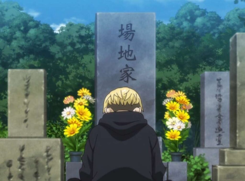 千冬は場地の墓の前で、オレはこれからどうしたらいいんスか!?と、泣きながら語りかけます。そこにマイキーが現れて、これでいいよな?場地、と場地の墓に語りかけます。