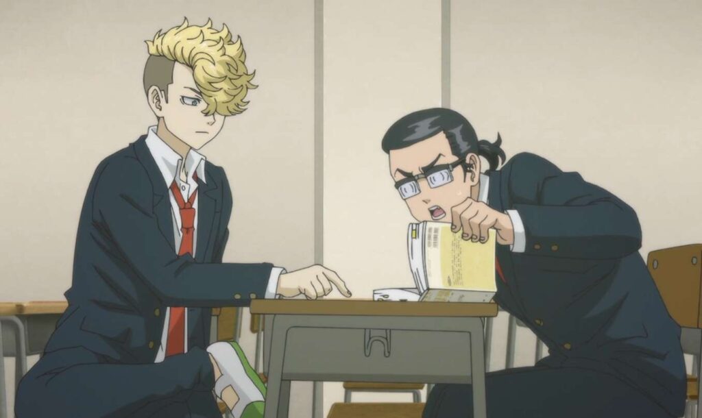 千冬が中学に入学した頃、留年していた場地に会いに行きますが、場地はなぜか眼鏡をして髪型も変え、まじめな格好で国語辞典と格闘していました。場地は手紙を書いていましたが、ところどころ漢字を間違えていて、千冬はその漢字の間違いを指摘し、少し会話をすることで場地と知り合いになります。
