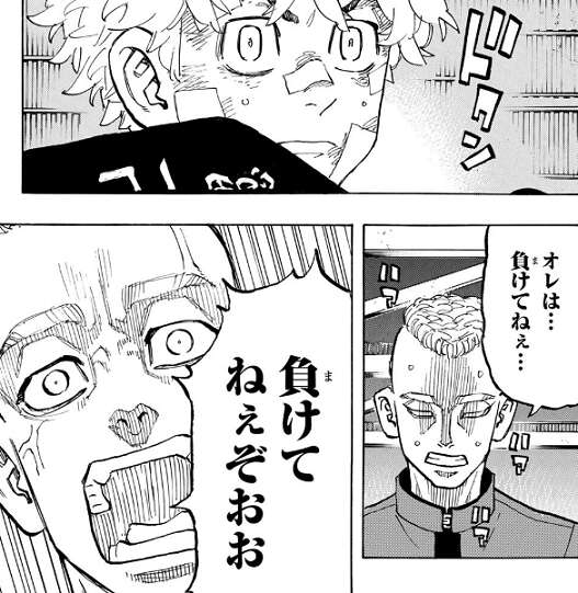 鶴蝶はアングリー、乾、千冬を次々と瞬殺し、武道も一方的に殴り続けて圧倒します。それでも諦めず武道は鶴蝶の前に挑もうとしますが、気付くと東卍で立っている者は武道しかおらず、東卍はもう終わりだとココは言います。それでも立とうとする武道は、千冬は武道にもう止めるように説得します。