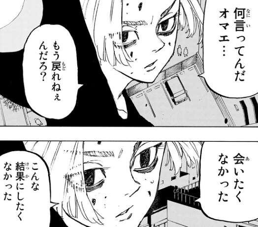マイキーと二人っきりになった武道は、今度はオレが君を救う番です!!と、話しかけますが、マイキーに銃で三発、撃ち込まれてしまいます。瀕死の状態となった武道に、会いたくなかった…、こうするしかなくなるから、と言い残し、マイキーはその場を去ろうとします。