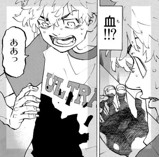 千咒と原宿で別れる寸前、千咒が死ぬヴィジョンが見えてしまい、武道はあの時見えたヴィジョンがなんだったのか悩みます。その後、武道はドラケンの家を訪れますが、そこでも自分の服に血が付いたヴィジョンを見てしまいます。その後、武道はトマトジュースを服にこぼされてしまい、自分が見たヴィジョンは未来に起こる出来事だと確信します。
