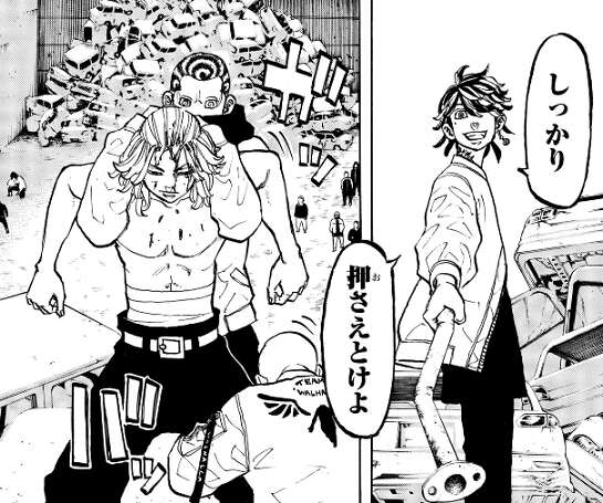マイキーは自分の兄を殺した一虎をずっと許すことが出来ず、そんなマイキーを諭し続けていたのが場地でした。しかし、その場地を刺して重傷を負わせた一虎を、マイキーは許すことは出来ず一方的に殴り続けて殺そうとします。武道はマイキーが一虎を殺してしまった未来へと向かっていると感じ、自分の無力さを痛感します。