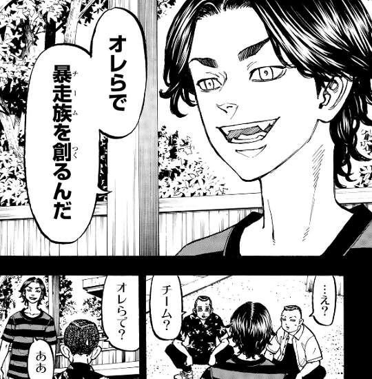 武道が落としたお守りを見て、マイキーは東京卍會が創設された時の事を思い出します。一虎が黒龍と揉めてやり合っているのを場地から聞いたマイキーは、ドラケン達も巻き込んでブラックドラゴンとやり合おうと言い出します。黒龍とやり合う大義名分が欲しいと言ったマイキーに、場地はオレらで暴走族を創ろうと提案します。