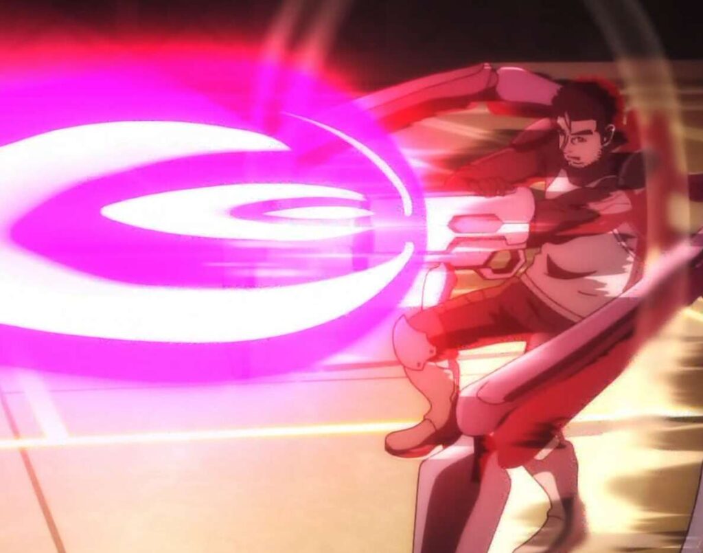 戦闘開始早々ガトリンは、左腕に装着した大砲で遠征艇のあるハンガーを狙いますが、この砲撃は村上がレイガストで何とか防ぎ、いきなり遠征艇を破壊される事態は回避します。