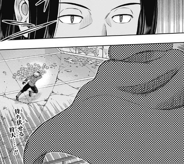 そしてついにヒュースが小荒井を捕らえ、ヒュースは攻撃をしかけます。小荒井は足にダメージを負っていて動きが弱いです。しかし東は身を潜めながら攻撃をしかけるヒュースを見ています。東は攻撃をしかける瞬間のヒュースを狙っているようです。