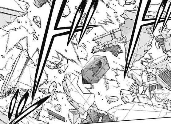 雨取という強力な切り札を、あえて切らずに場に伏せる事で二宮隊の意識を縛る、というのが三雲の作戦のようです。しかし、それもヒュースが生き残っていればの話のようです。二宮は両攻撃(フルアタック)で空閑を攻撃し、空閑は大ダメージを受けてしまいます。
