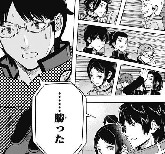 誰もが三雲の攻撃が外れたと思いましたが、烏丸と三雲だけは、…勝った、と勝ちを確信します。