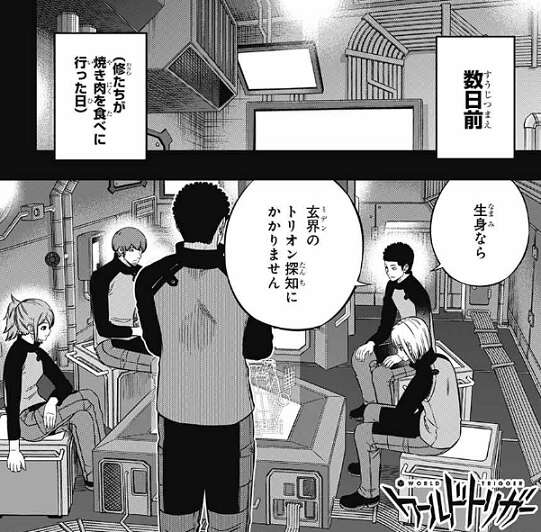 ガロプラ遠征艇内では、ラタが生身ならミデンのトリオン探知にかからず、トリオン兵を送り込むゲートに紛れてミデンの街の様子を探れると提案しています。