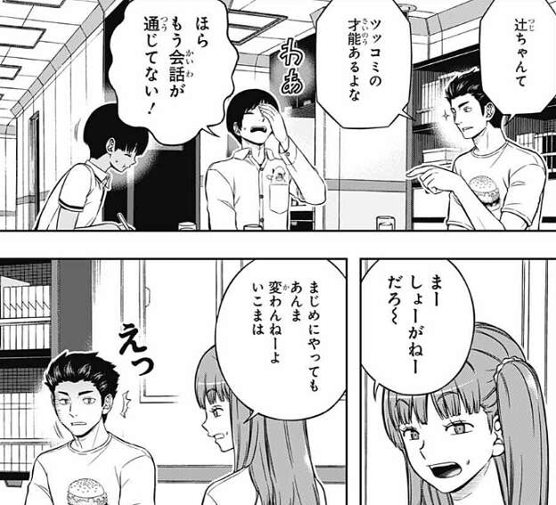 場面は王子2番隊に変わりますが、辻が生駒に戦闘シミュをもうちょっとまじめにやるように注意しています。このチームの戦績が仁礼や帯島の評価にも繋がるんですよ?と、辻はまじめに意見しますが、辻ちゃんってツッコミの才能あるよな、と生駒は的外れな返事をし、辻は頭を抱えてしまいます。その様子を見て仁礼が、まじめにやってもあんま変わんねーよ、いこまは、と冷静にツッコみますが、仁礼の意見に生駒はショックを受けます。