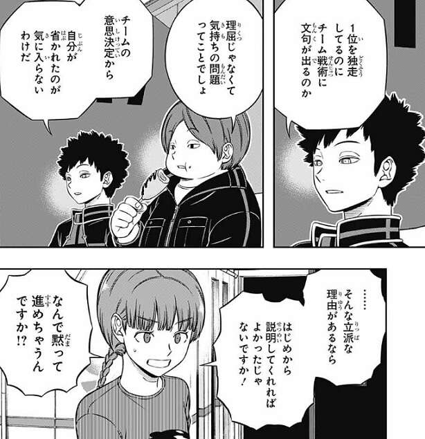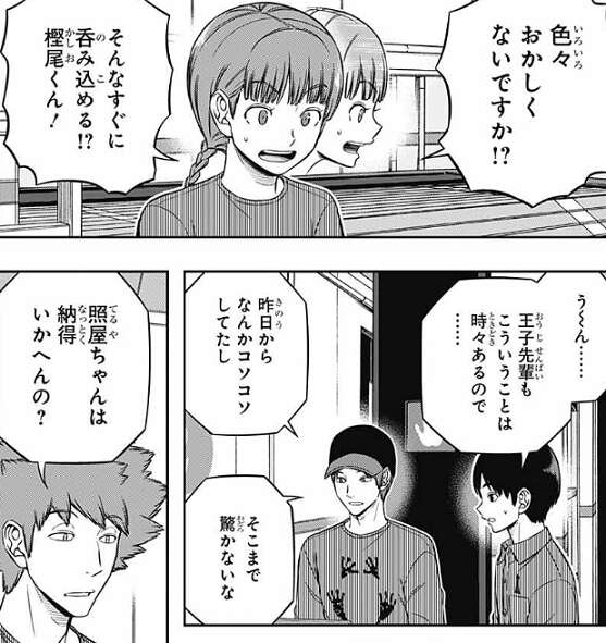 一方、諏訪7番隊の三雲は共通課題で一つ、思いついたことがあるようで、諏訪にその話をしようとします。しかし、ルール的に有りか、無しか、が三雲には分からないようで、迷っている様子を見せます。