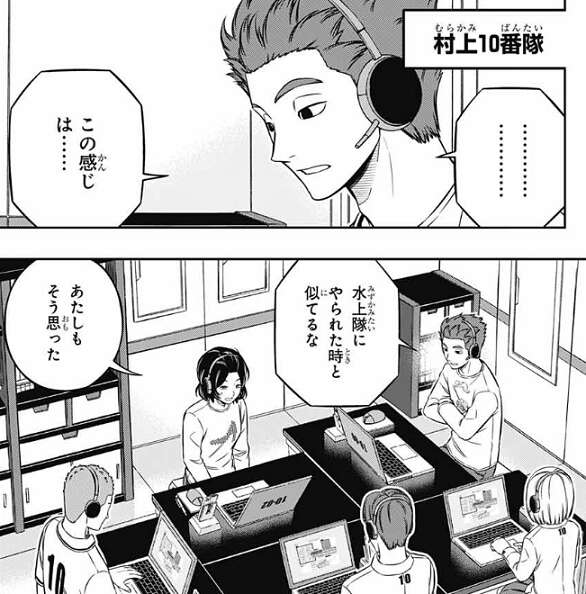 氷見は水上隊や諏訪隊が使っている『特別な攻略法』を探すべきか?と、村上に聞きますが、村上は、今からそれを探すのはうちの正確には合わないと思う、と言い『特別な攻略法』を探して使う事には否定的な意見を出します。他のメンバーも同じような意見で、村上隊は今後も今まで通り準備したもので戦う事にします。