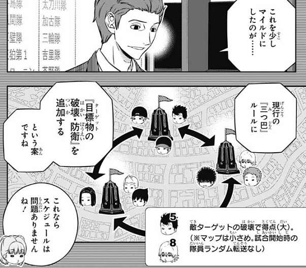 次回、諏訪7番隊はさっそくトリオン兵を作成してみますが、作成コストの制限で三雲は弱いユニットしか作れず苦戦します。